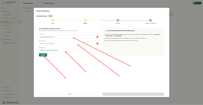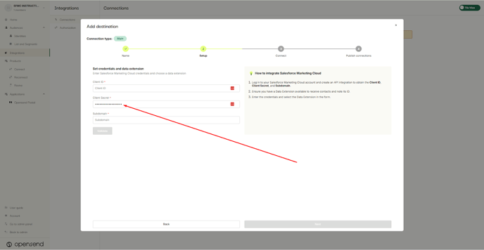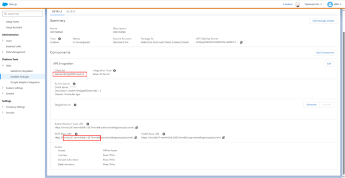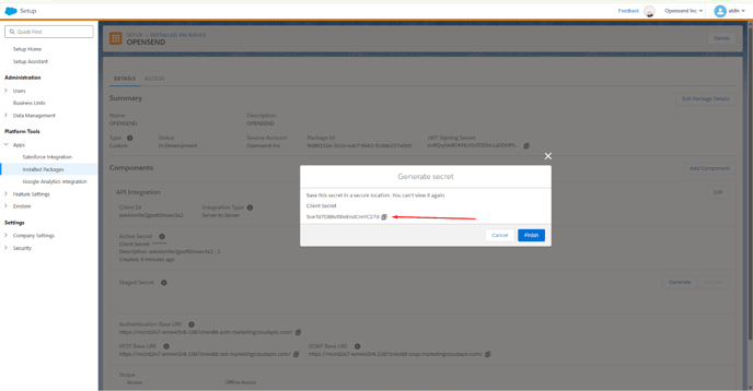 - Copy the Client secret and paste it into the Opensend SFMC setup