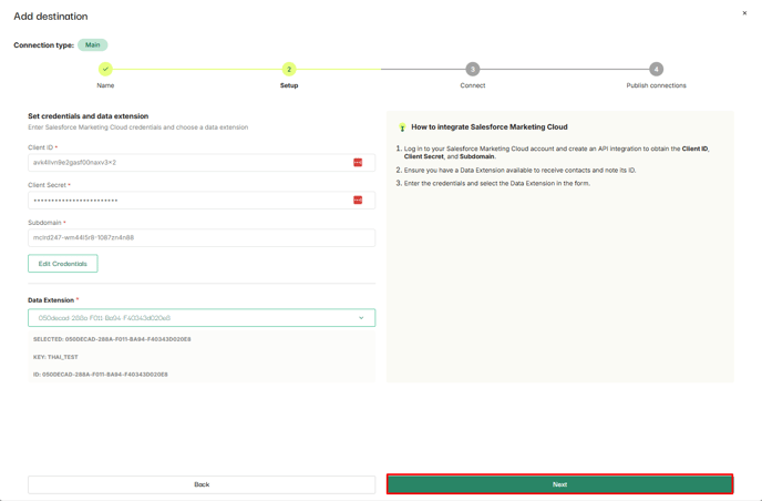 - Click on the Select data extensions dropdown and search for the desired data extension