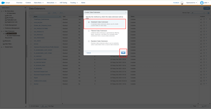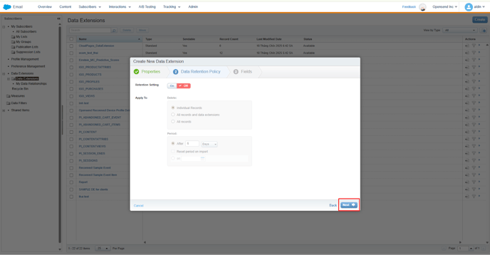 - Select the data extension that you want to use for a contact delivery and click on the Next button