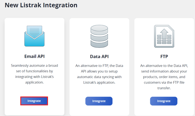 Click on the Integrate button for the Email API option