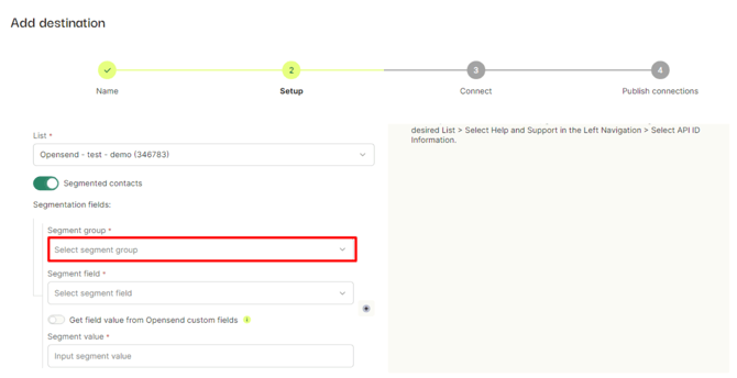 - For the Segment group name we suggest using “Opensend segment group” and for position, you can enter “1”.
