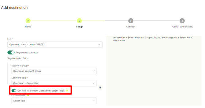 - Toggle ON - Get field value from Opensend custom fields