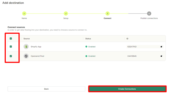 - Select traffic sources and click on the Create connections button