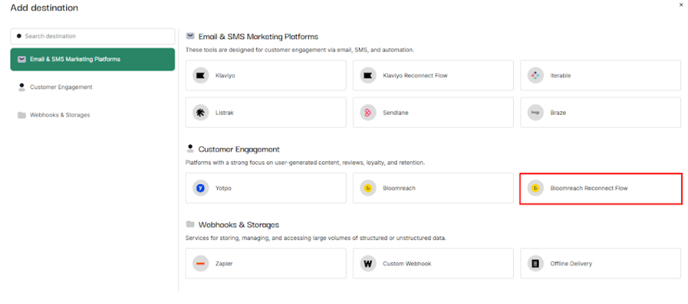 - Select Bloomreach Reconnect flow