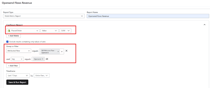 This ensures the report only includes revenue generated from Opensend-related flows and emails.